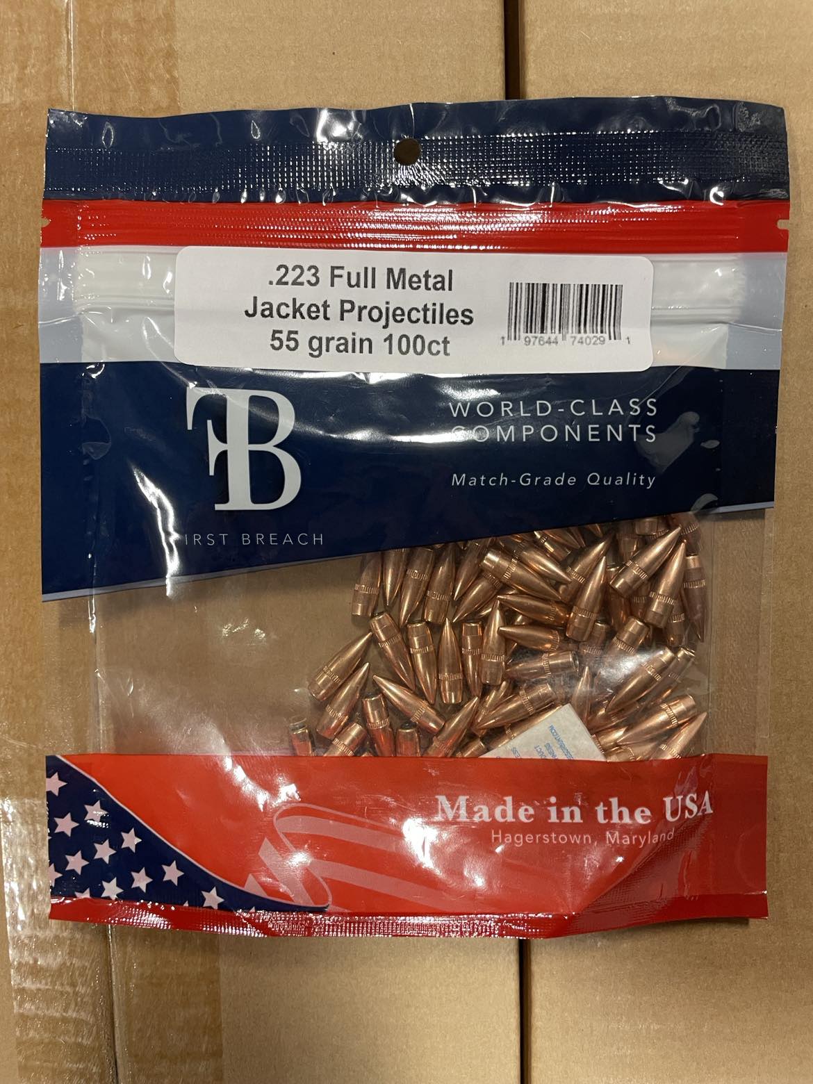 First Breach 223 55gr FMJ Projectile, 100 Pack