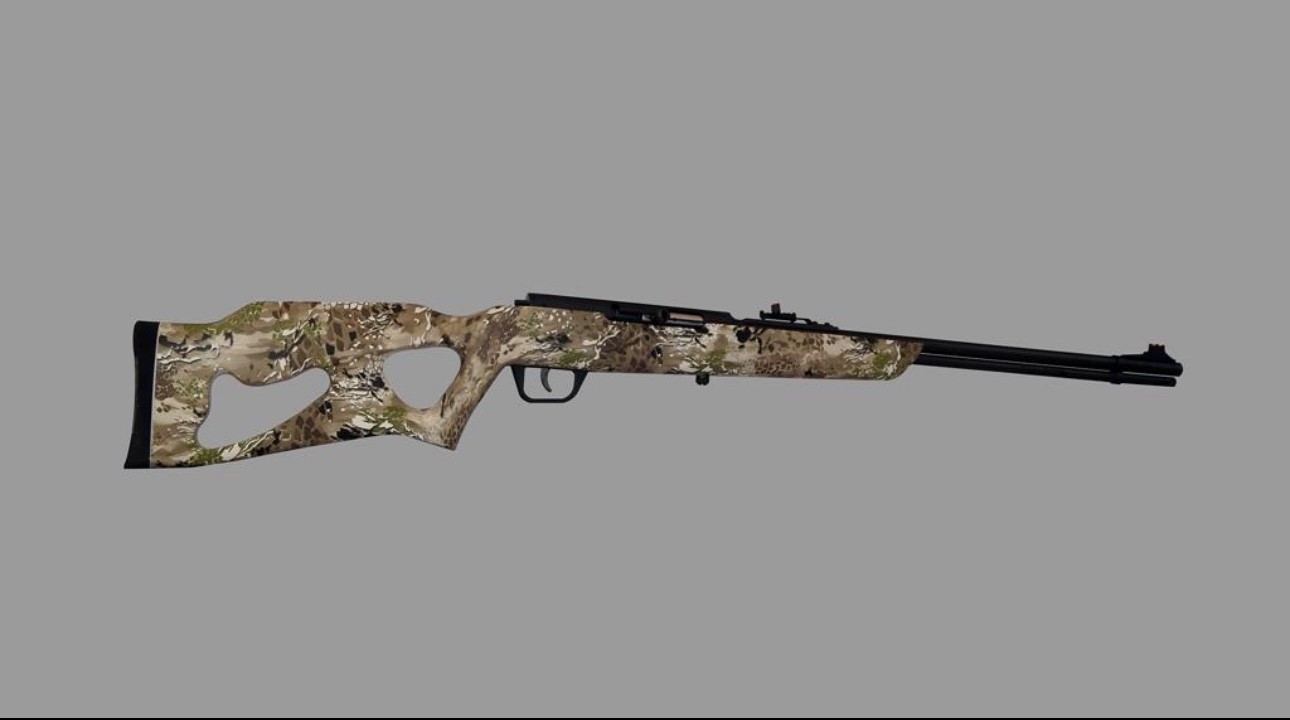 Mendoza Puma 3000 semi-automatic rifle, .22LR, 21.25″ barrel, 17-rd tube magazine, front fibre optic sight w/ adjustable rear sight, Safari camo thumbhole stock. Made in Mexico, non-restricted in Canada